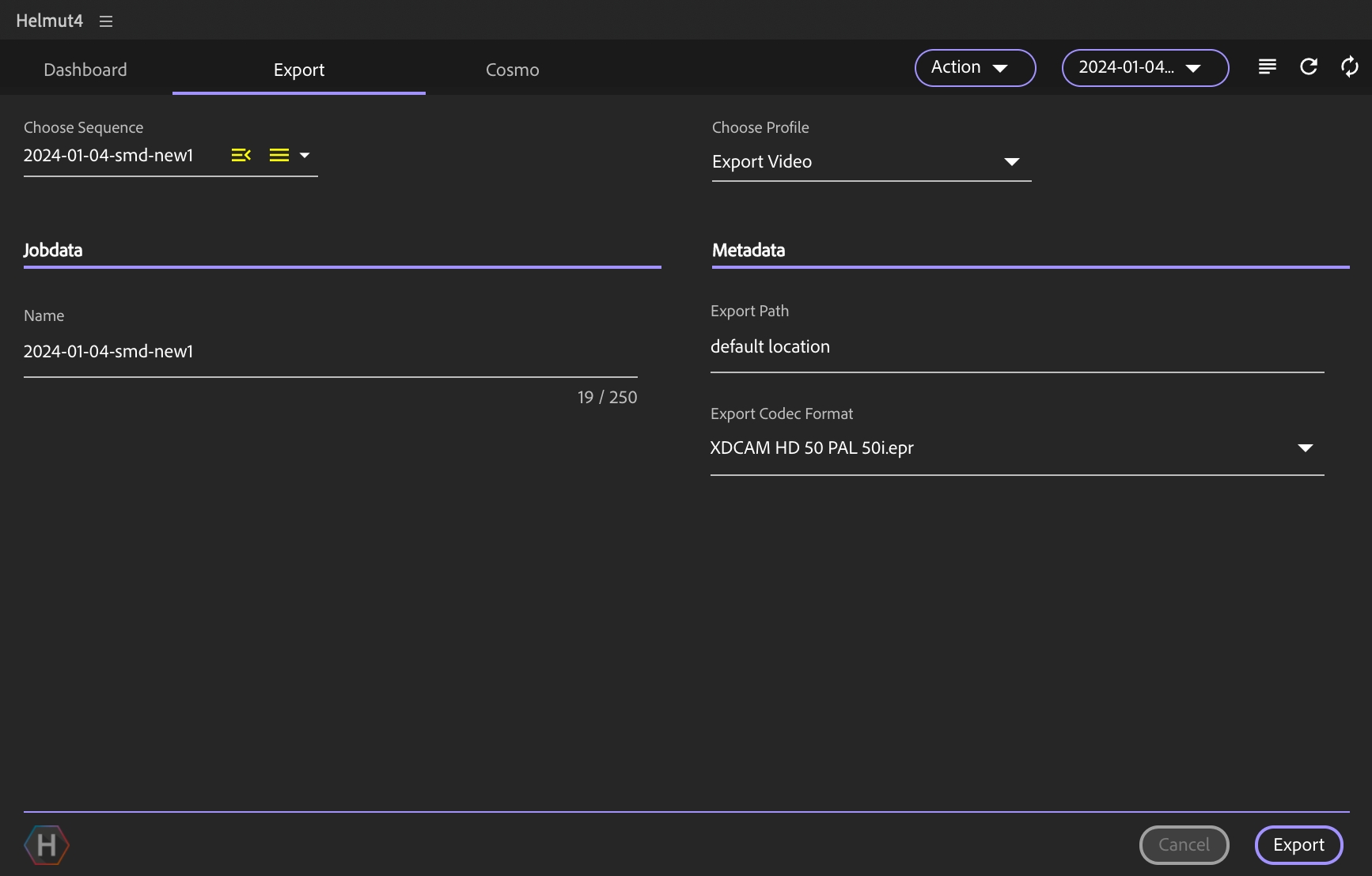 The export trigger can be accessed within the Helmut Panel. All available and assigned profiles will be displayed in the "Choose Profile" dropdown menu.
