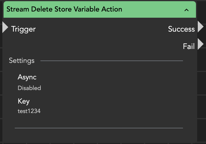 With the help of the Stream Delete Store Variable Action it is possible to delete an existing store variable in the Stream Variable Store by specifying the name (key) of the variable.
