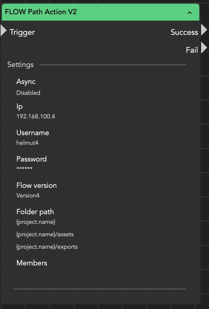 The Flow Create Path Action node can create a new Flow project with a specified folder structure. It also allows you to maintain synchronization between the Flow project and its corresponding Helmut4 project.