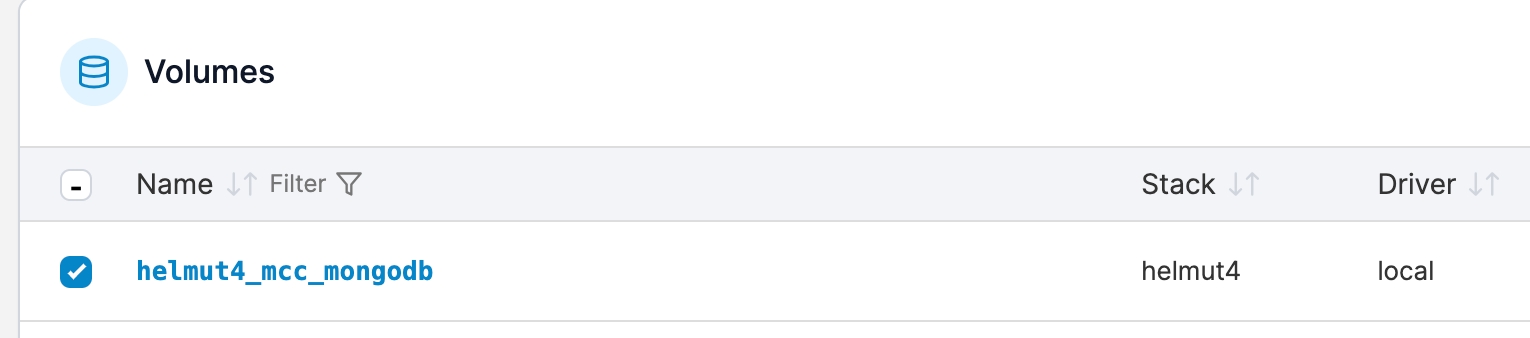 * Please ensure that you do not delete the running MongoDB volume, as this would permanently erase your actual Helmut4 database from the host!