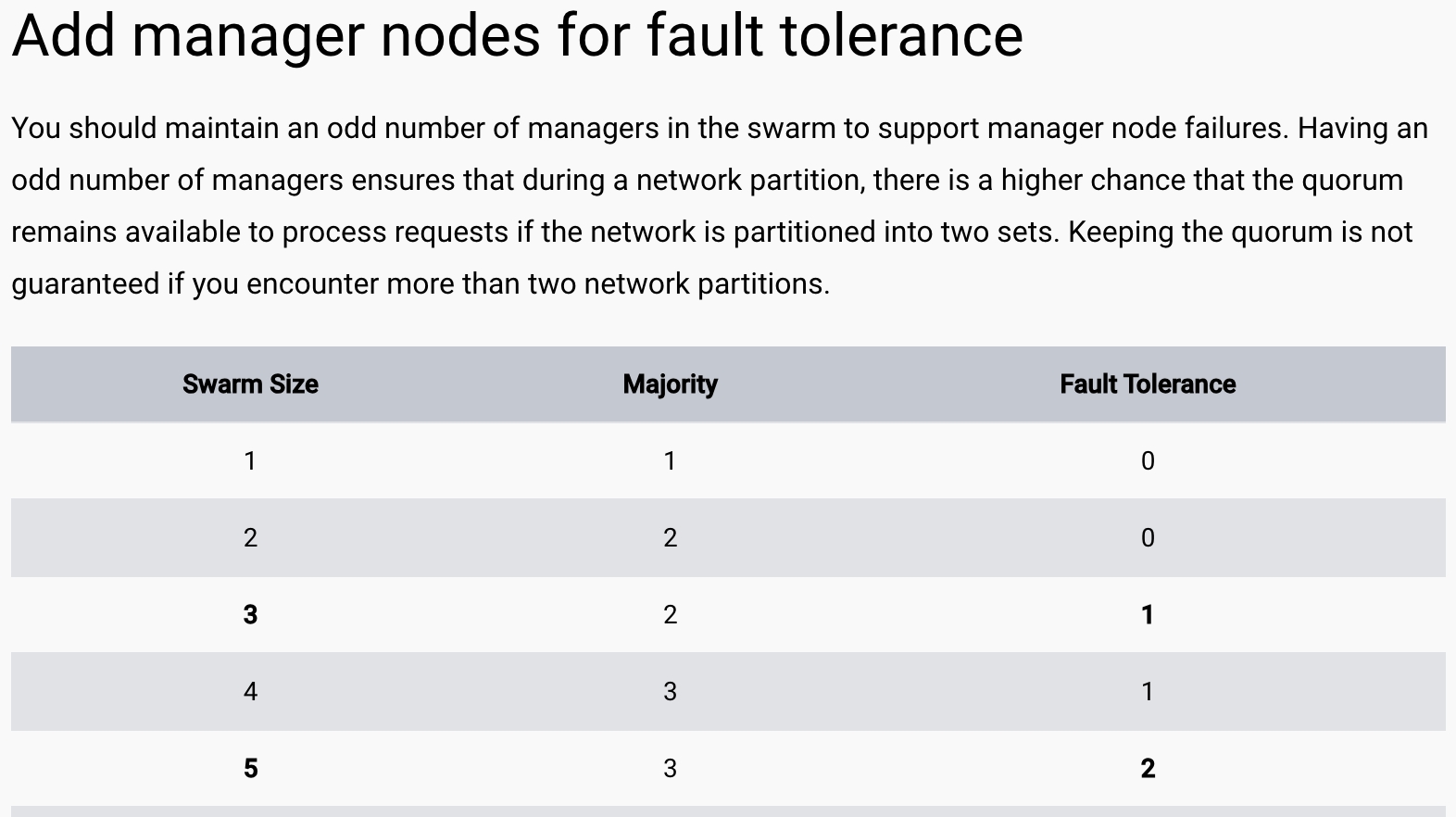 Ensure that you thoroughly review the official Docker Swarm documentation beforehand to comprehend the technical architecture, particularly in scenarios where one or multiple worker nodes may not be available.