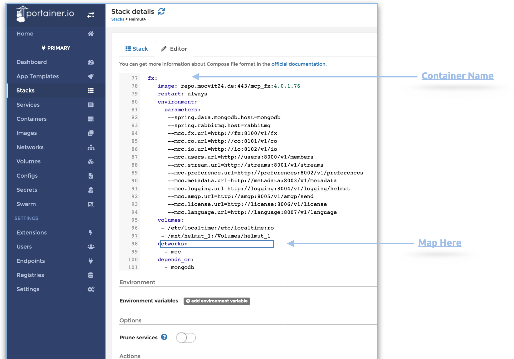 MoovIT registry for Portainer
