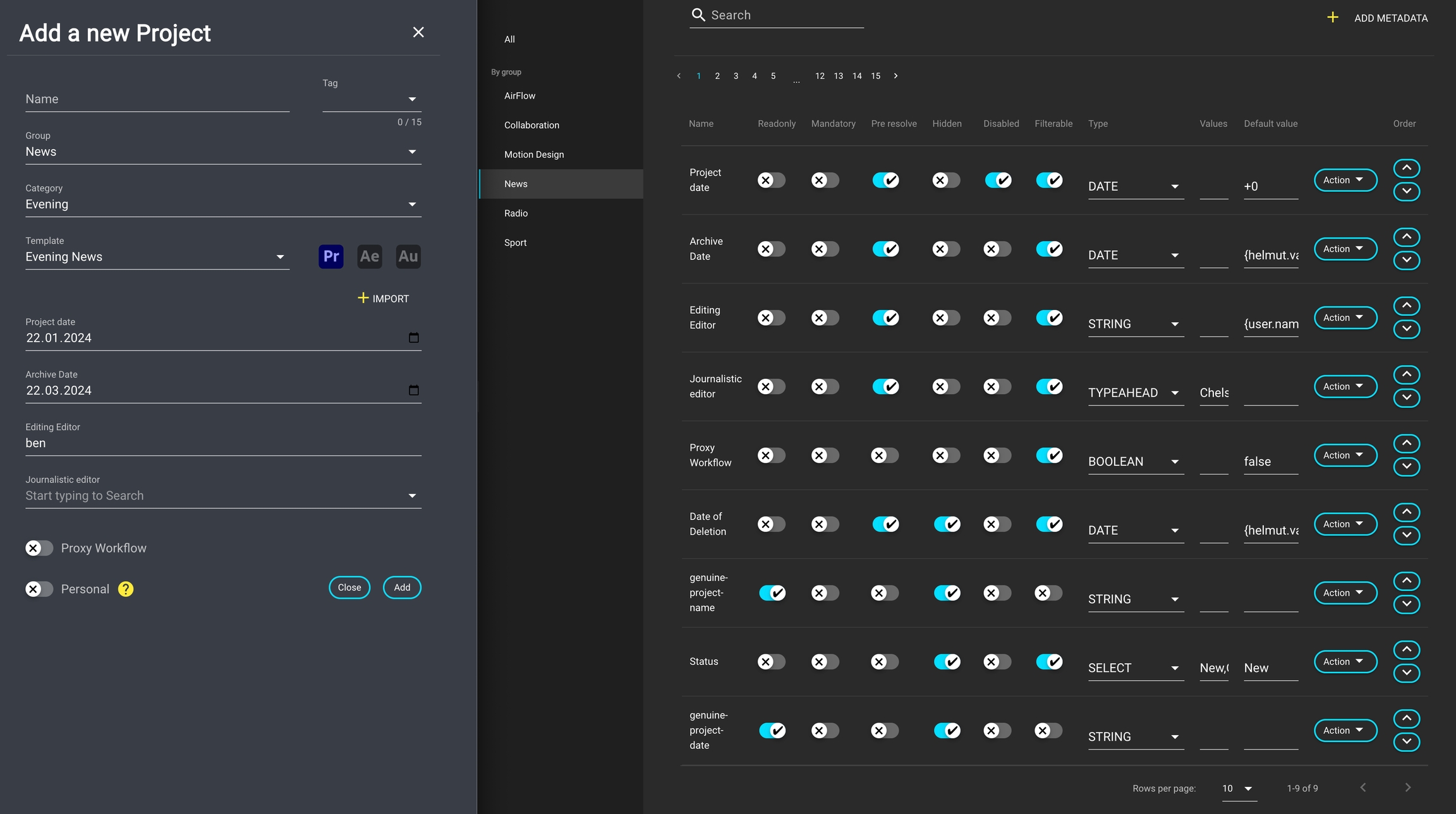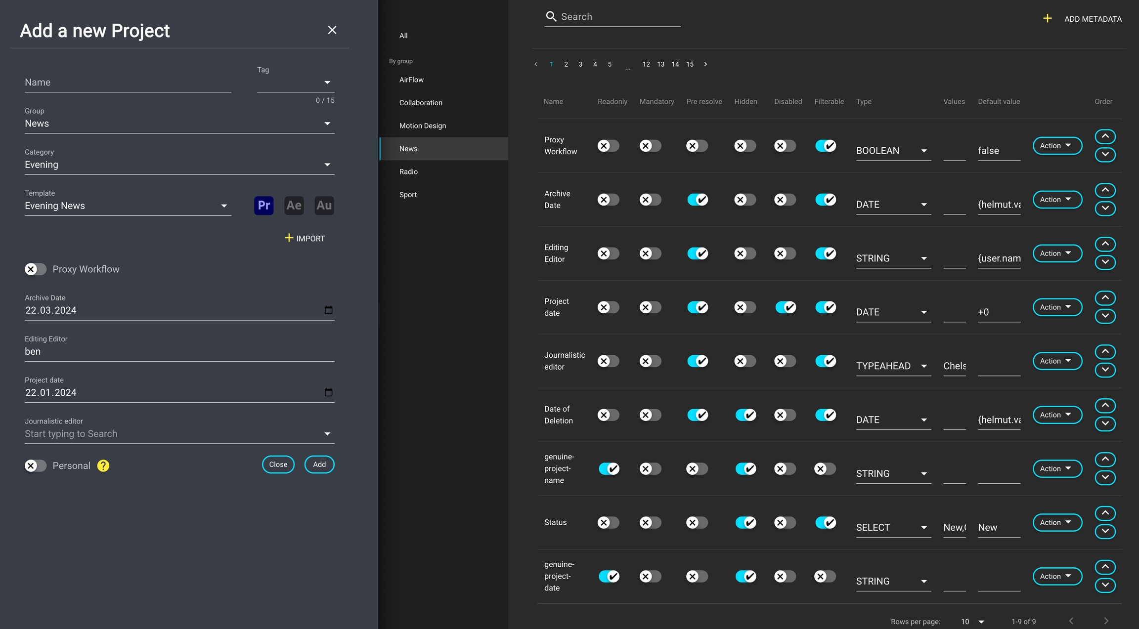 These metadata entries are then utilized in FX to assign them to a group or individually to projects.