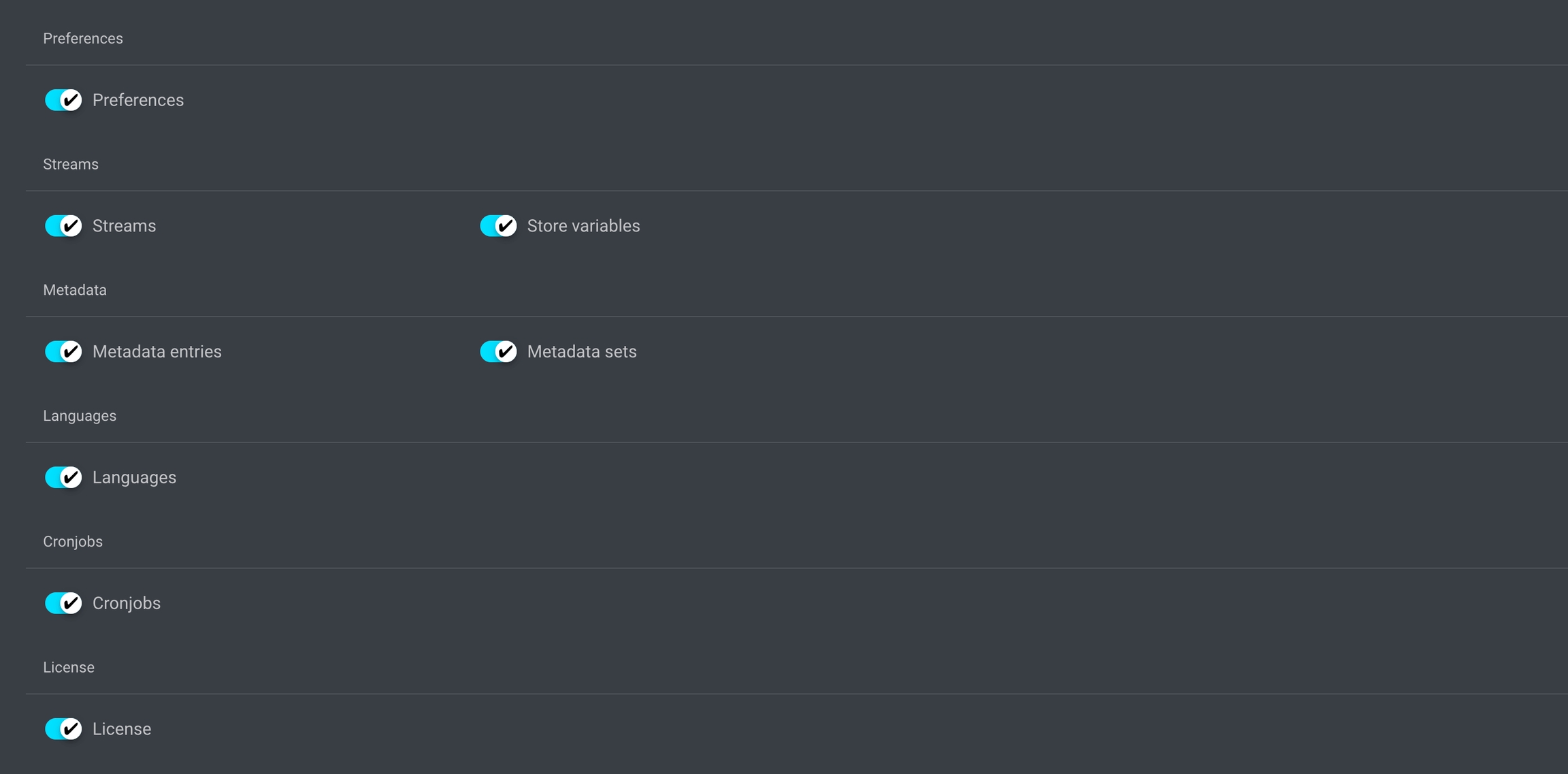 If you are unsure which options should be backed up, consider sticking with the "toggle all" option.