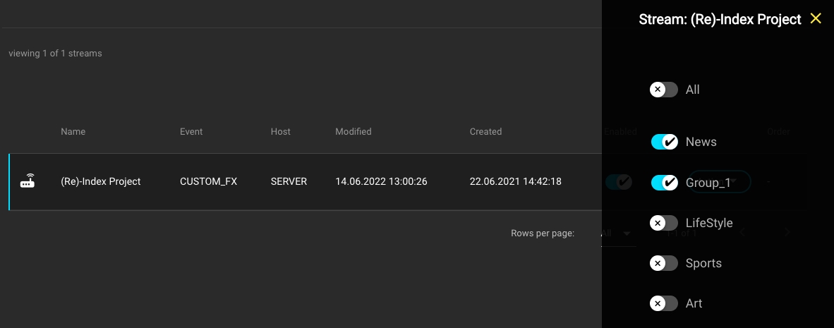 Custom_IO and Custom_FX streams need to be assigned to groups, as well as being enabled or disabled.