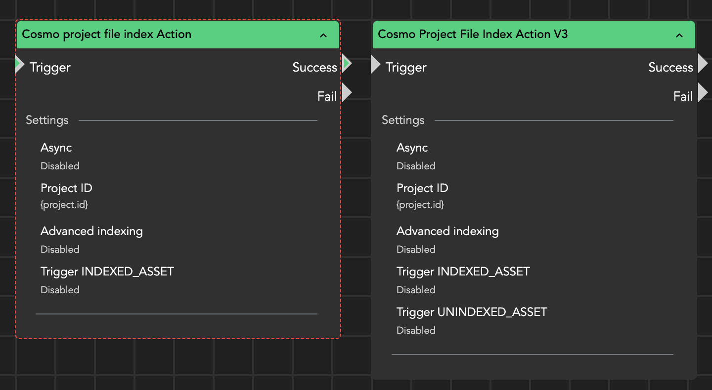 Deprecated and new version of a project file index action
