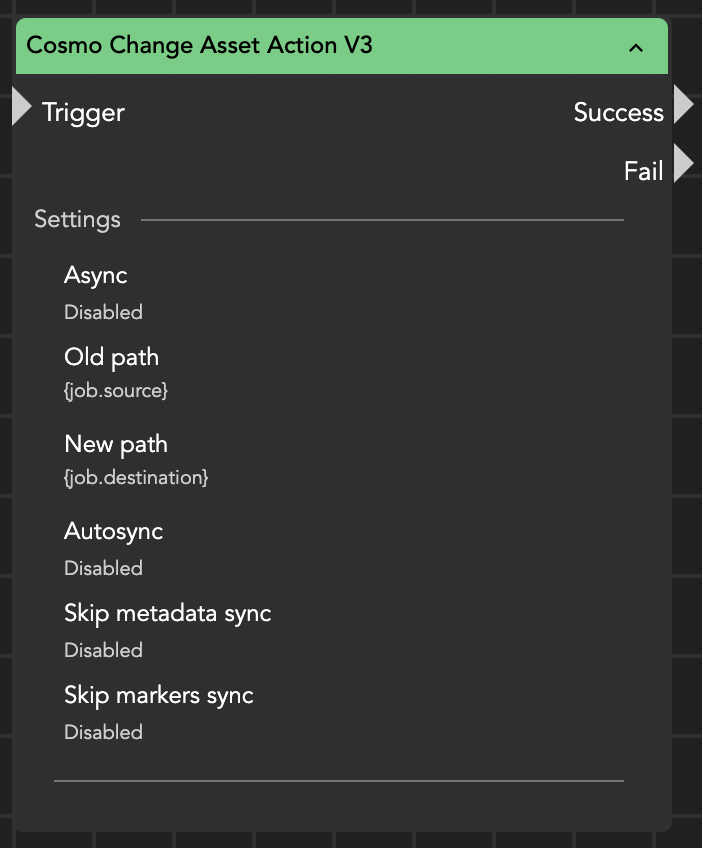 <figure><img src="https://content.gitbook.com/content/g3aidOE5kukL7ZTq8g05/blobs/inrZ4Jq1zb5KCyj83ZXA/image.png" alt="" width="351"><figcaption><p>Cosmo Change Asset Action</p></figcaption></figure>
