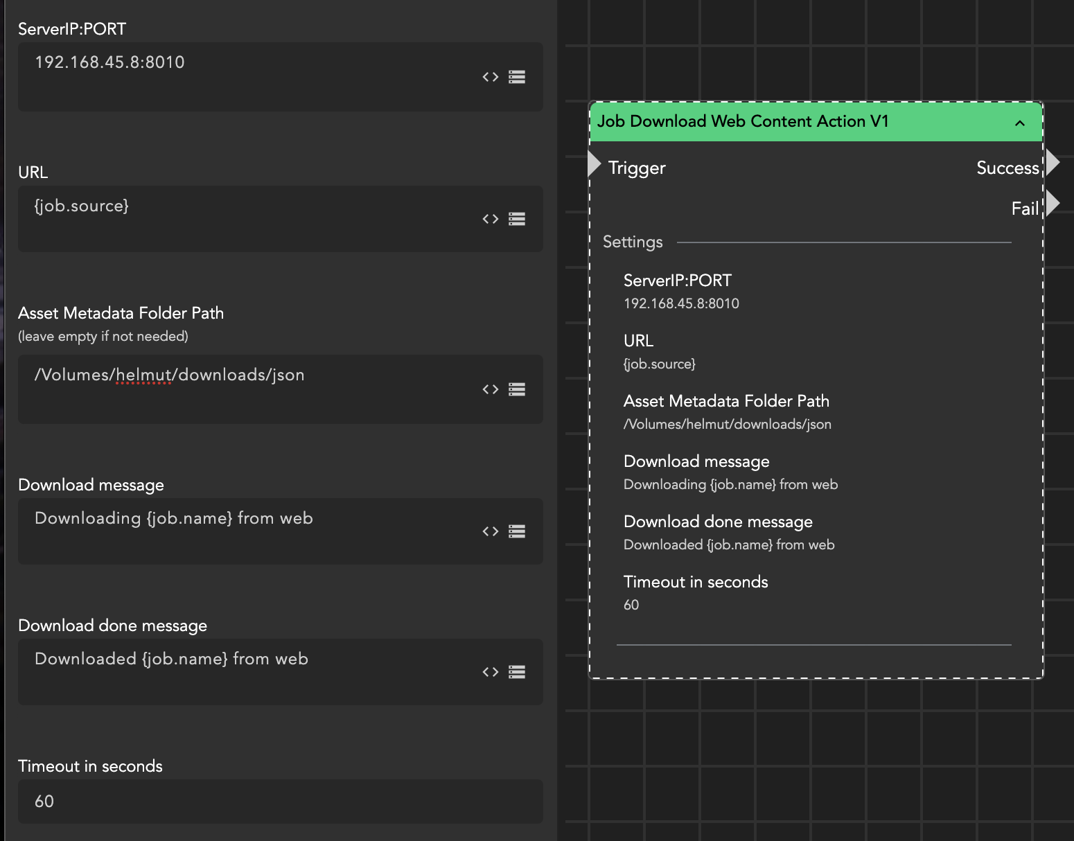 The Job Download Web Content Action node is designed to download assets from the web. To use this node, an additional container is necessary, and it is not included in the default stack. For more details, please refer to the Web-Content-Downloader Stack section.