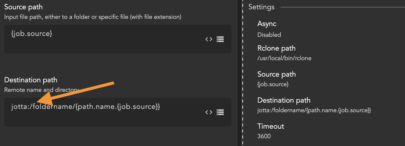 <figure><img src="https://content.gitbook.com/content/g3aidOE5kukL7ZTq8g05/blobs/H4gah5DzY54ok1Swqhn1/image.png" alt=""><figcaption><p>Rclone destination path</p></figcaption></figure>