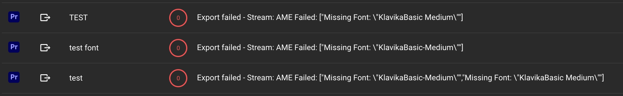 The AME node can report to the dashboard if a font or asset is missing (e.g., due to licensing or storage access).