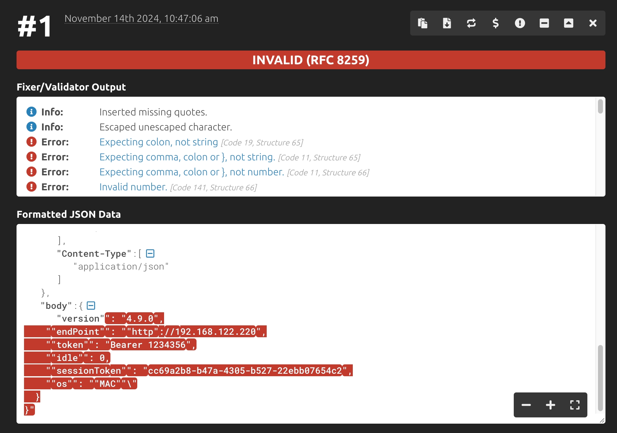 JSON Formatter & Validator is useful for checking JSON payloads, which are often placed in the body field of various nodes.
