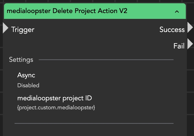 The Medialoopster Delete Project Action allows you to delete an existing project from medialoopster.