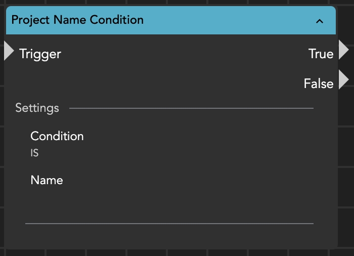 With this conditional node, it is possible to check the name of a project. If the project's name matches the string input set within the condition, the node will exit either with a true or false outcome.