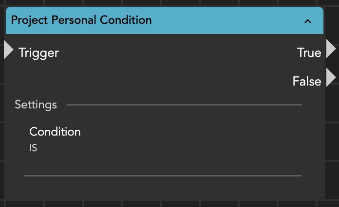 With this conditional node, it is possible to check the "public accessability" of a project. If the project's "personal state" matches the string input set within the condition, the node will exit either with a true or false outcome.