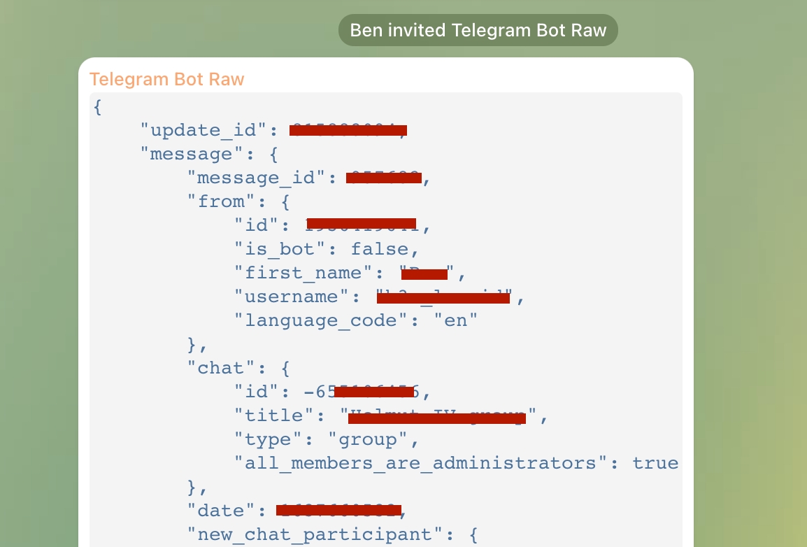 Locate the Telegram bot named "@RawDataBot" or "Telegram Bot Raw"; it will assist you in obtaining the ID of your group.