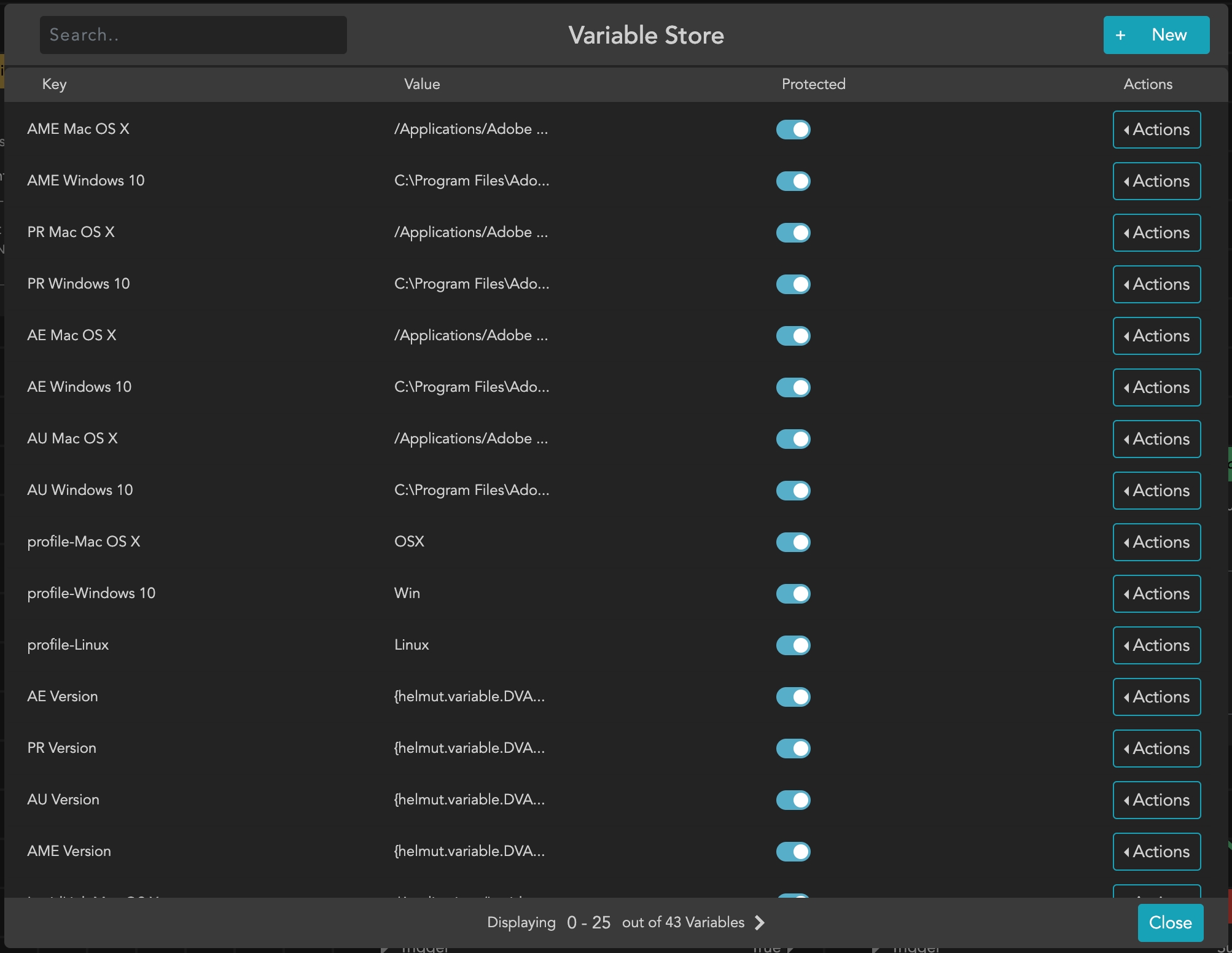 The Variable Store is showing all existing store variables, it will always show a pack of 25 variables. Navigating to the next page can be done using the bottom menu. Variables are listed ascending from their creation date.