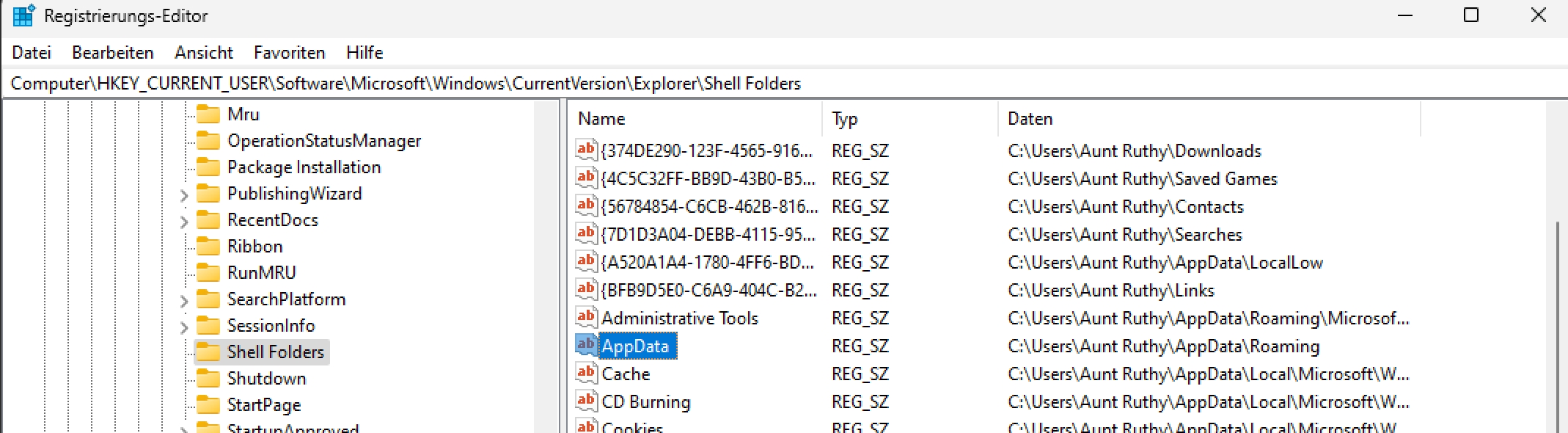 Computer\HKEY_CURRENT_USER\Software\Microsoft\Windows\CurrentVersion\Explorer\Shell Folders\AppData