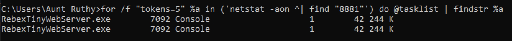 You will see the process listed twice, once for IPv4 and once for IPv6. Both are using the same PIC (process ID), which will make this easy to recognice.