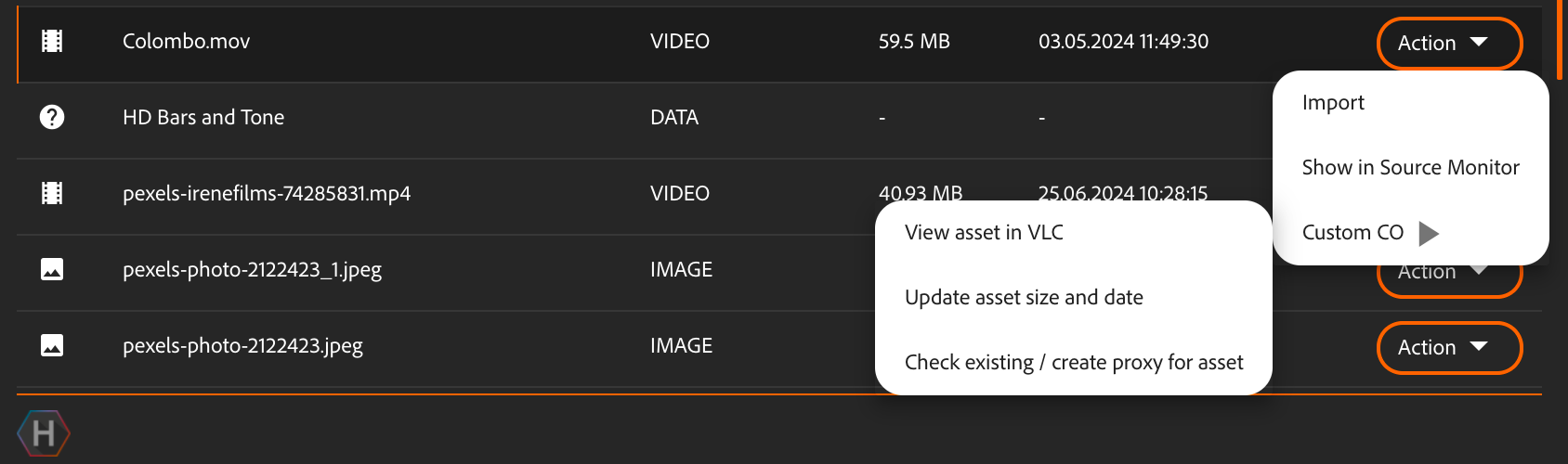 It is possible to execute a Custom CO stream based on an element, such as an asset. This logic can also be accessed from within the Assets tab.