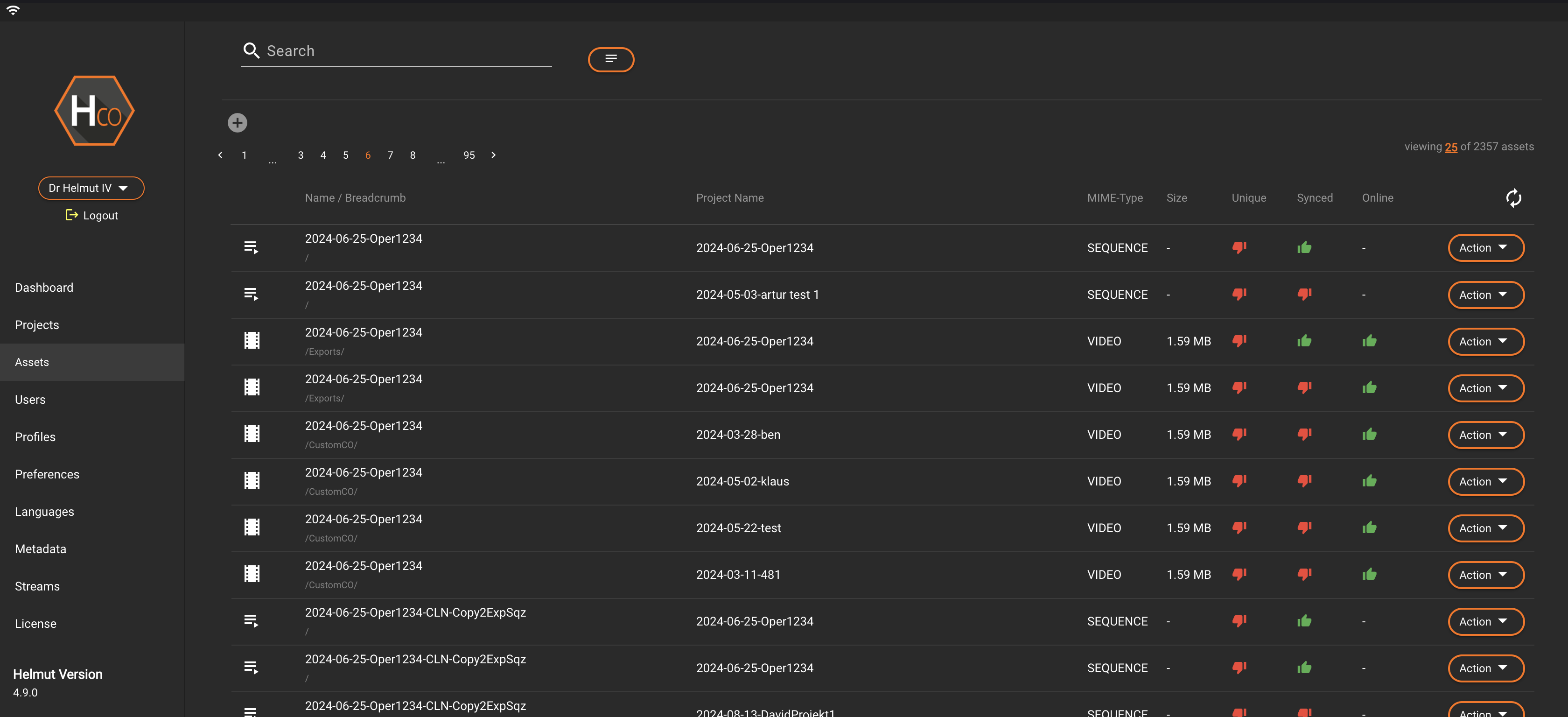 * A red thumbs-down indicates that the asset is pending and waiting to be synced into the dedicated project via the Helmut4 Panel.