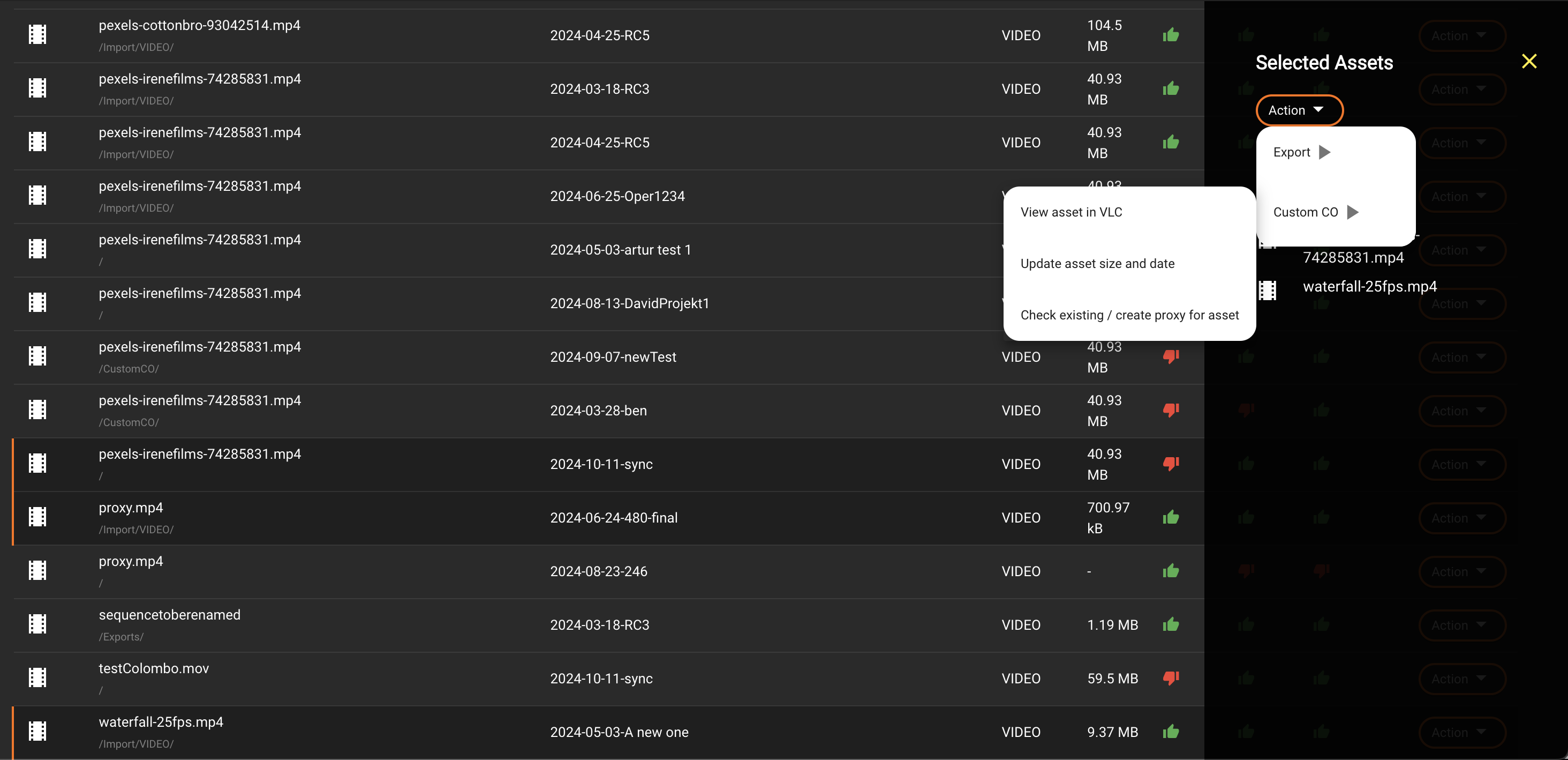 It is also possible to select multiple assets by holding down the Shift or Command key, enabling the execution of specific actions on the selected assets.