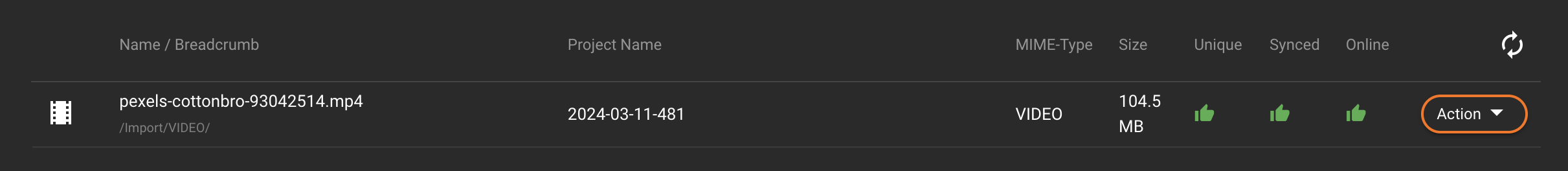 **For example:** pexels-cottonbro-93042514.mp4 (filename) <--> /Import/VIDEO/ (breadcrumb)