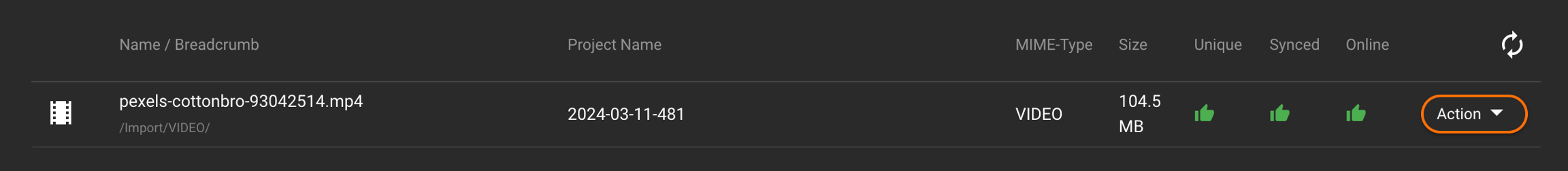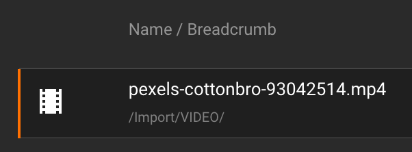 For example: pexels-cottonbro-93042514.mp4 (filename) <--> /Import/VIDEO/ (breadcrumb)