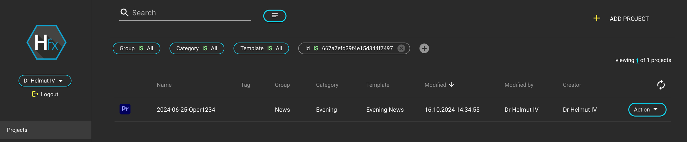 Clicking on the project name will apply a search filter using the project ID and switch to the FX projects tab, highlighting the desired project.