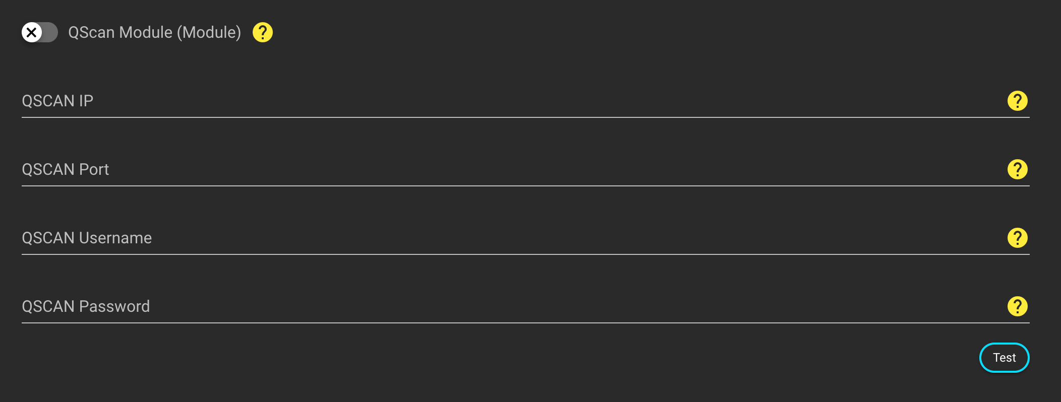 Click the "Test" button to check the input for correctness by connecting to QSCAN.