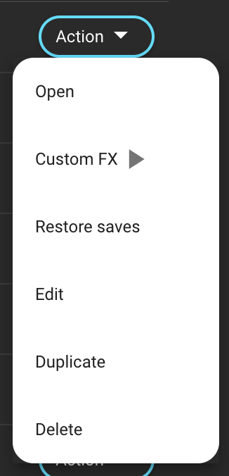 <figure><img src="https://content.gitbook.com/content/ttnkf7qEIoqtmdv6485i/blobs/dPRKrlSkudhNBPc0IEhD/image.png" alt="" width="163"><figcaption><p>Stream Action Menu in FX</p></figcaption></figure>