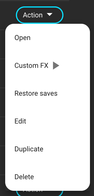 All available trigger events are displayed in the side menu and are described in the dedicated event trigger documentation: FX, IO, CO & HK.