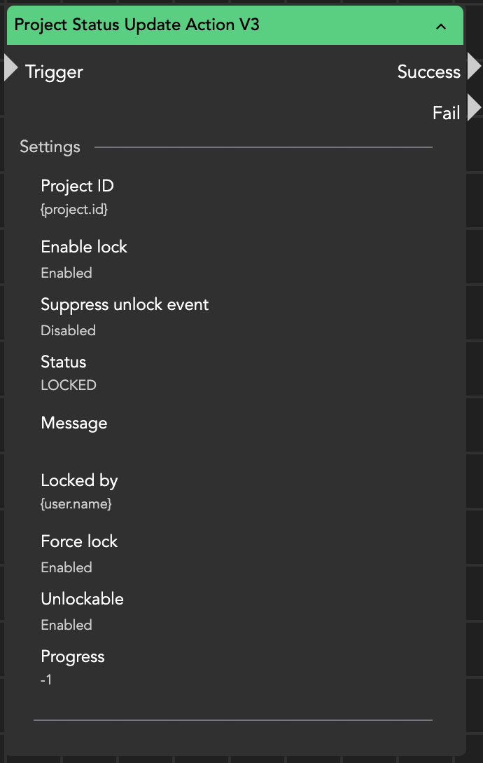 With the help of the Project Status Update Action, it is possible both to set or change the status of a project and to lock or unlock a project simultaneously.