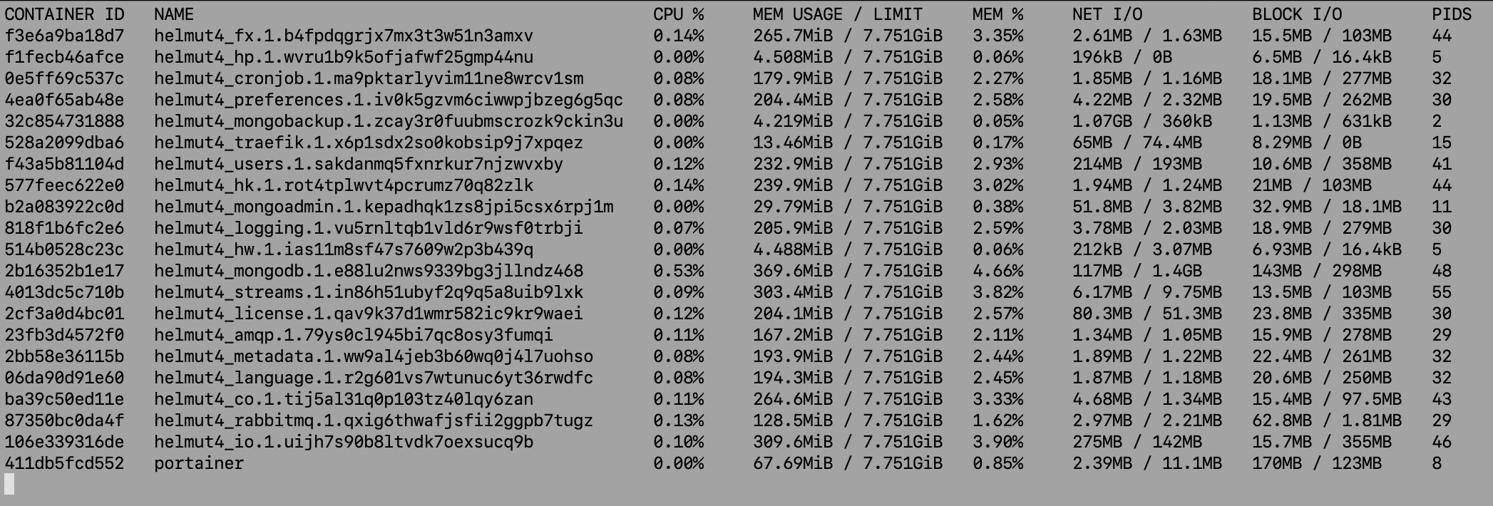 If your server host is experiencing high RAM and/or CPU usage, despite adhering to the tech specs, you can check via the command line which container is consuming the available host RAM/CPU.