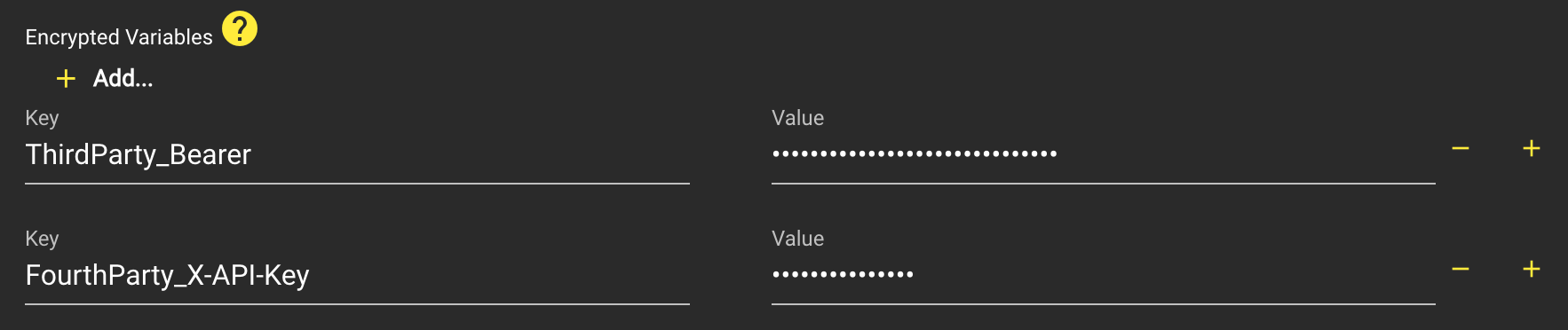 If the bearer token of a third-party application is needed for HTTP communication, an encrypted variable can be used.
