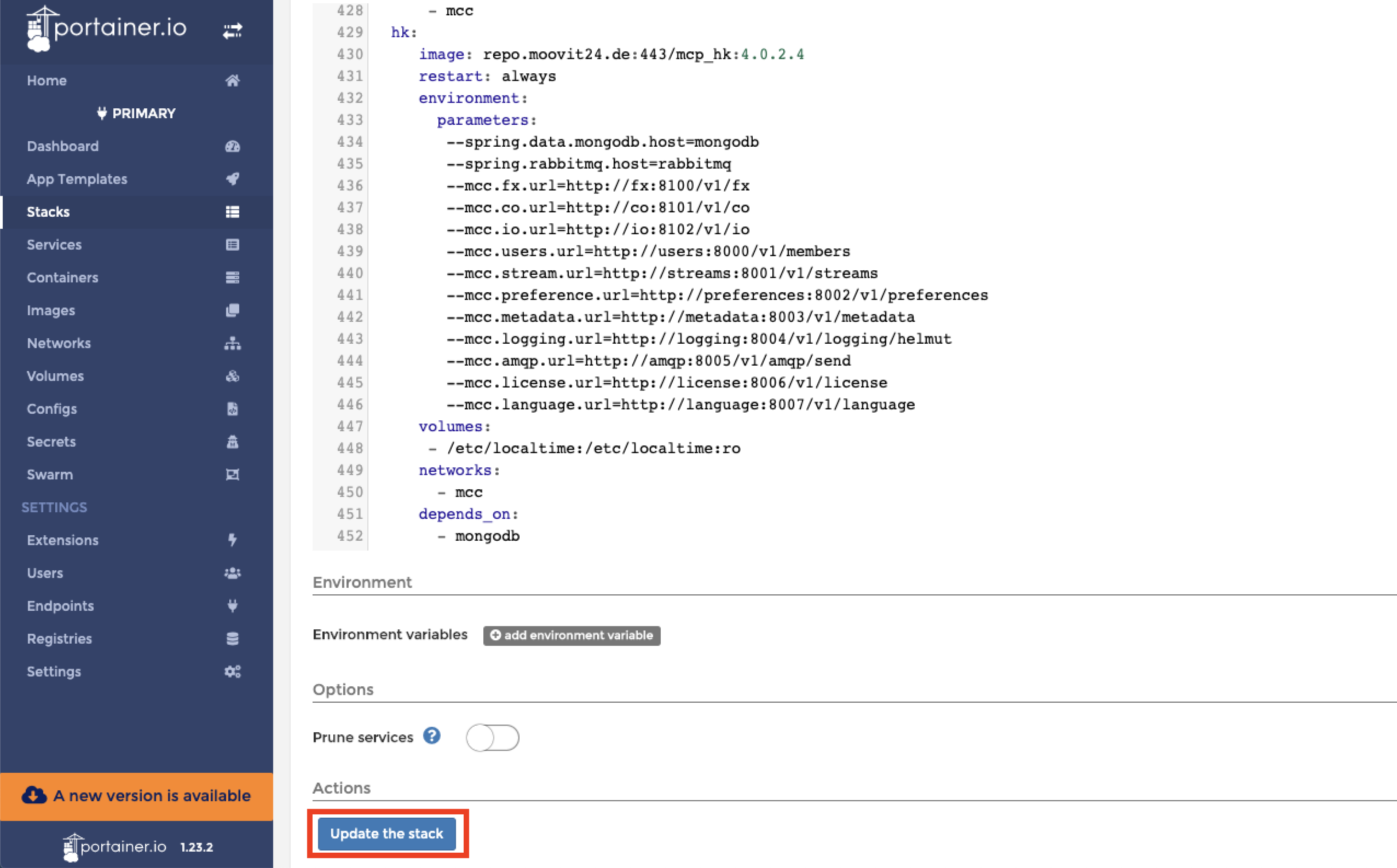 6.) Update the stack file