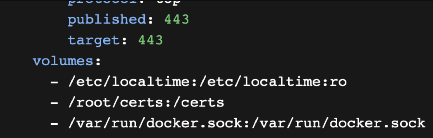 The same with the volumes mount for the certificate which needs to be uncomment by deleting the #