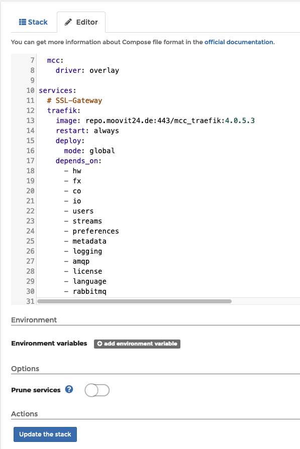 The stack on the master has an additional "editor" tab, the configuration of which is as follows: