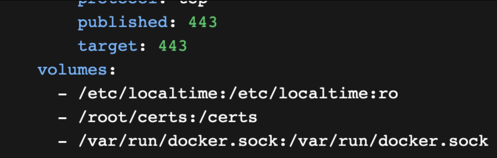 is available in your stack file version. If you have this line, and it starts with a #, delete this character to uncomment the line. If you don't have this line, please add it below the image: line The same with the volumes mount for the certificate which needs to be uncomment by deleting the #
