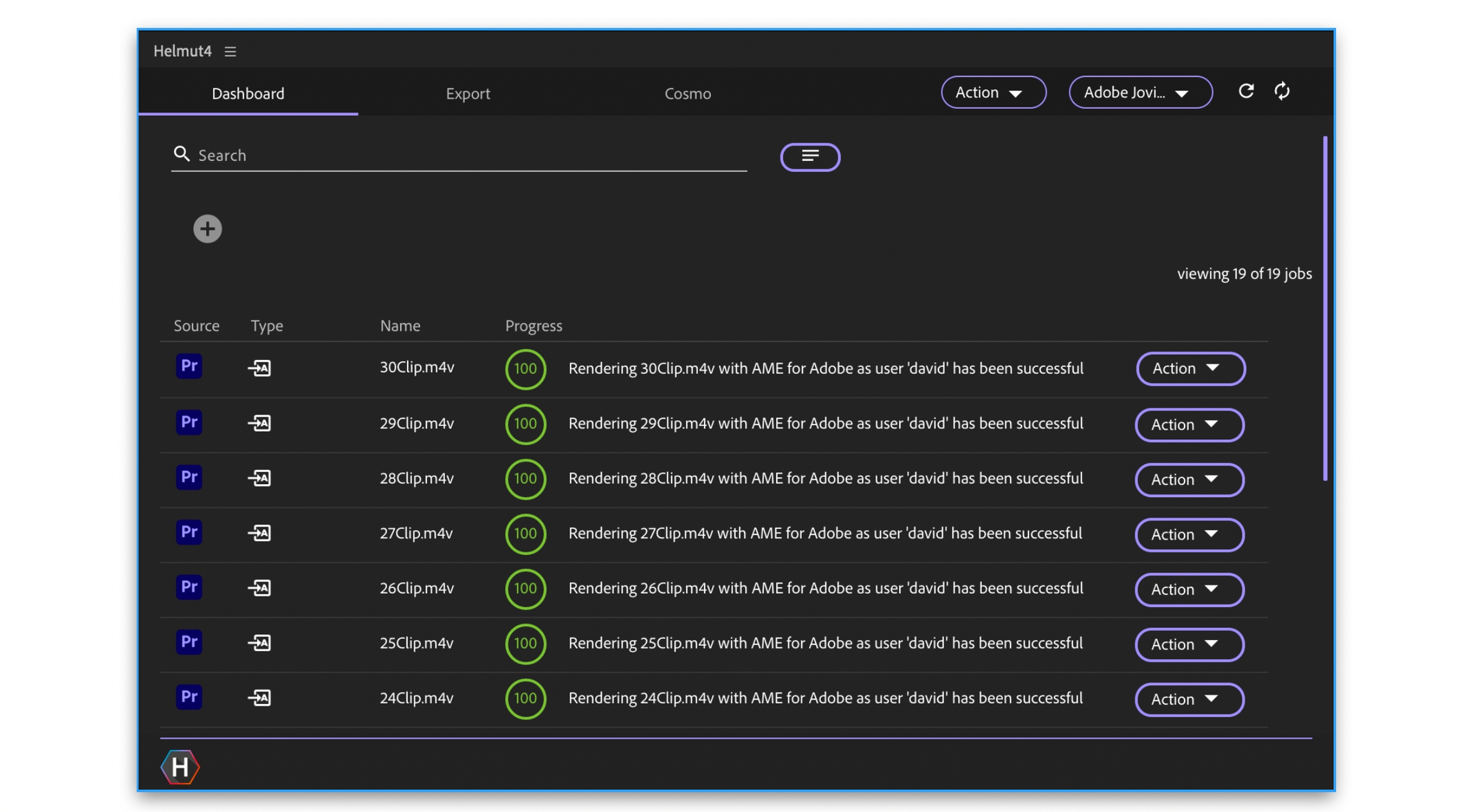To complete the Helmut4 product range, not just one but 3 panel extensions are available. A panel for the interaction of the user with Helmut4 and the display of all project-related workflows. Regardless of whether it's importing or exporting, everything is conveniently controlled and easy to use. A panel for communication between Premiere / After Effects and Adobe Media Encoder. Rendering sequences and compositions via AME has never been so easy. And last but not least, Helmut4's hidden panel extension for Premiere. It enables every function that Premiere makes available to be automated using the Stream Designer.