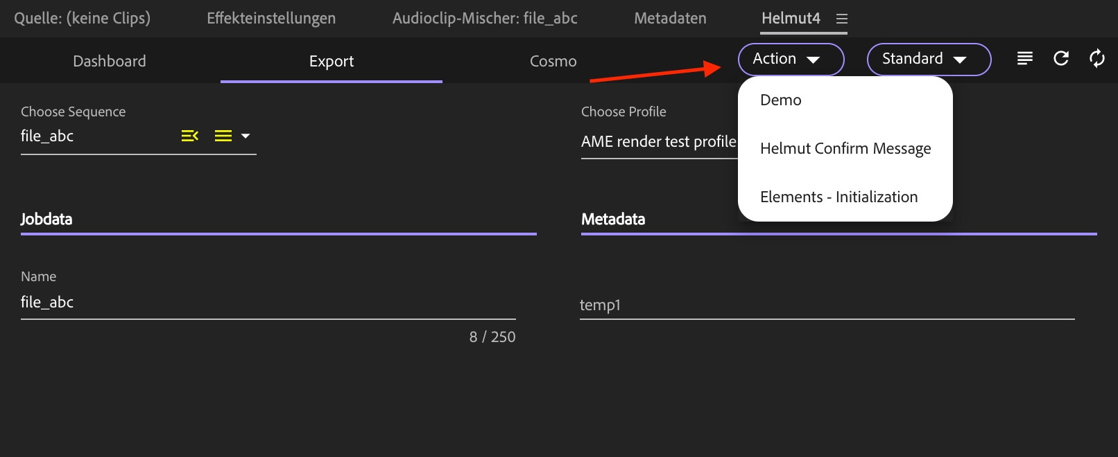 The purpose of the Custom_IO trigger is to initiate a stream based on sequence, composition, or project criteria. These streams can be executed via the 'Action' menu in the Helmut Panel.