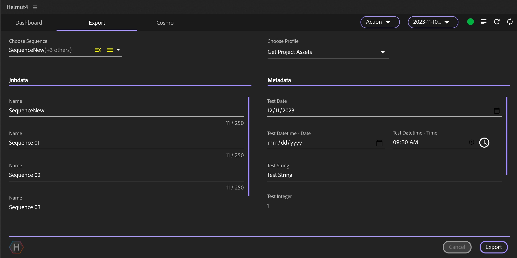 It is possible to export either a single sequence/composition or multiple sequences/compositions with a single click.