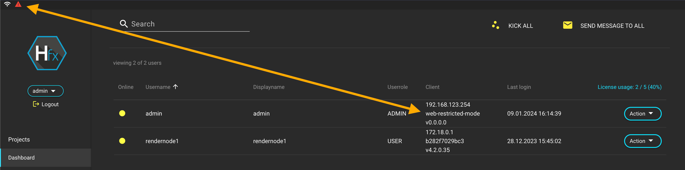 Kick User: Clicking this button will log out/disconnect the user from the system.