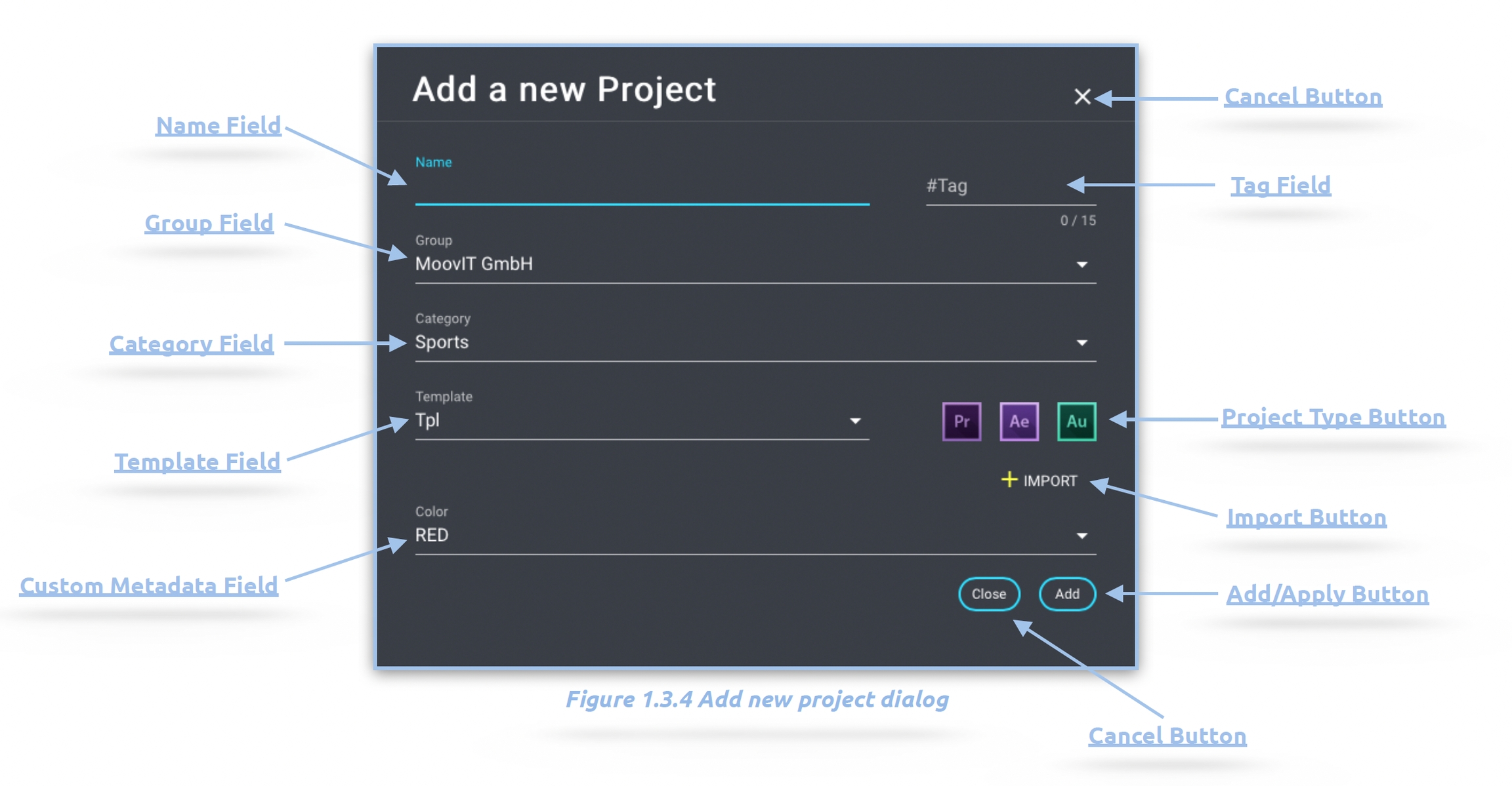 Clicking the "ADD PROJECT" button will open the "Add a New Project" dialog, which is utilized to create one or more projects.