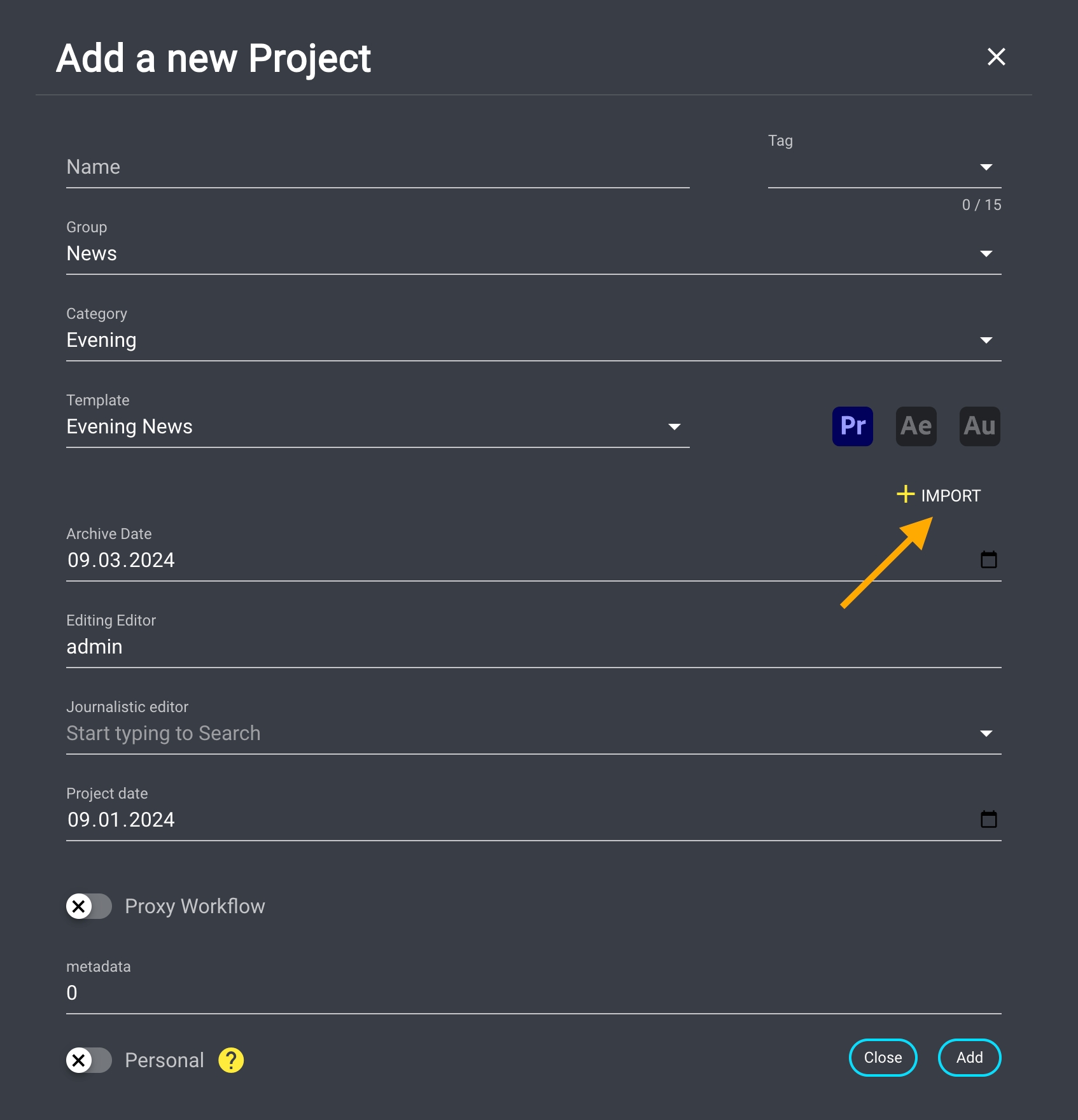 This trigger will be executed in place of the Create_Project trigger when a project is imported in the 'Add a New Project' dialog overlay.