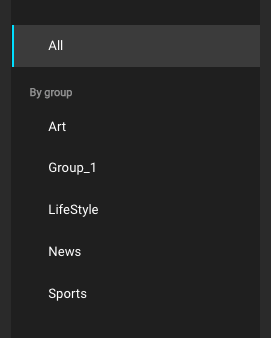 Clicking on a dedicated group will display all available categories within the selected group.