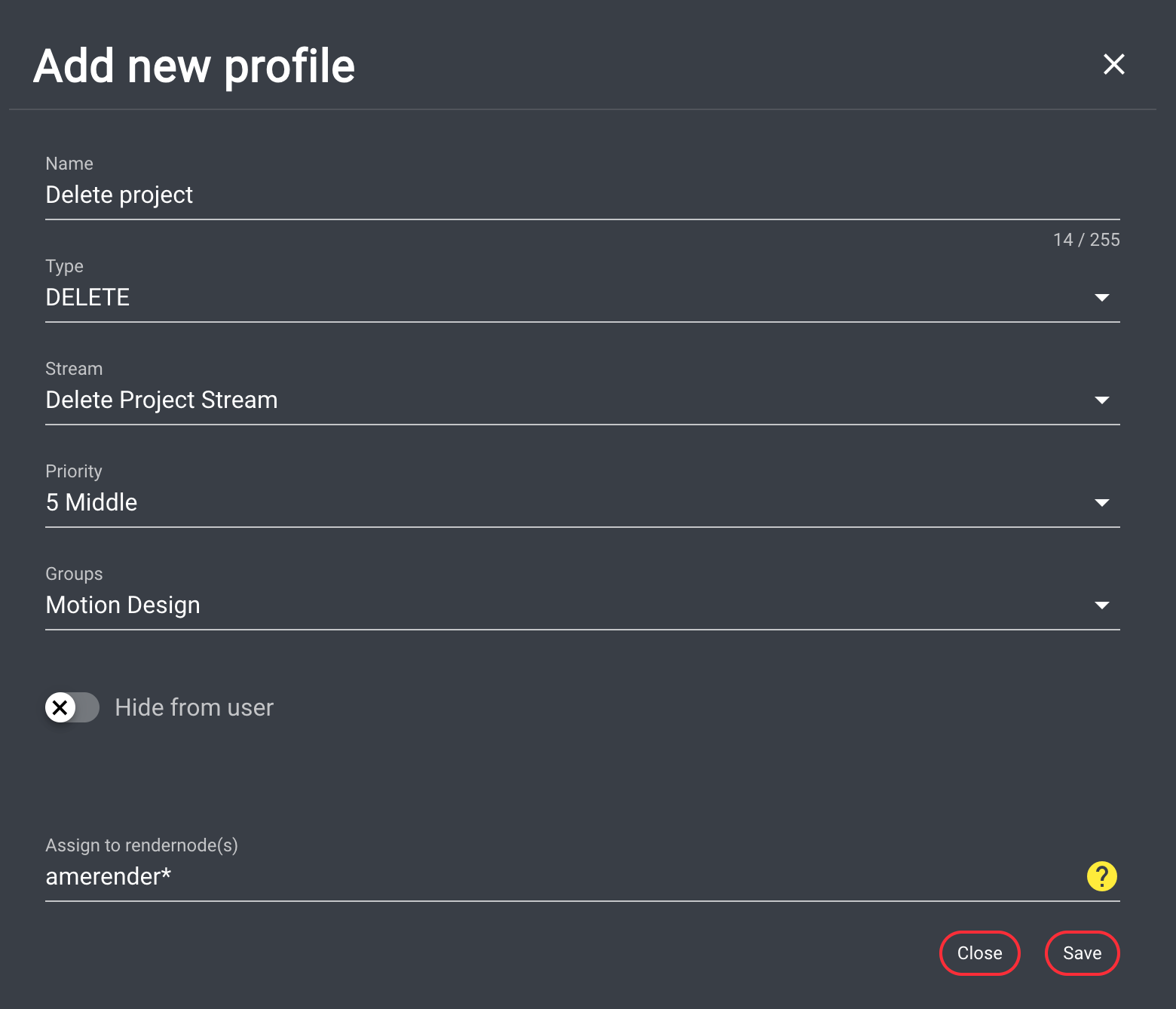 A free text field for defining the name of the render node(s) that should process the jobs created with this profile. Different ways to define these render nodes are available:
