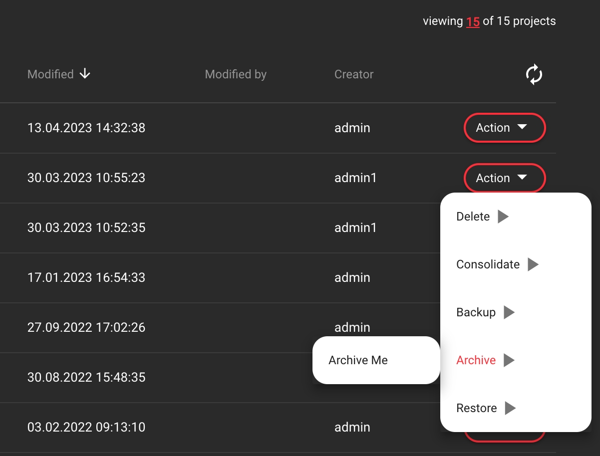 This HK event will be triggered when the 'Archive' profile of a specific project is invoked through the action button menu.