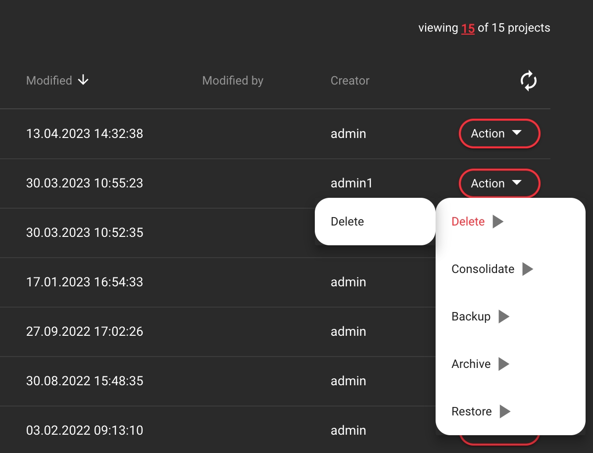 This HK event will be triggered when the 'Delete' profile of a specific project is invoked through the action button menu.