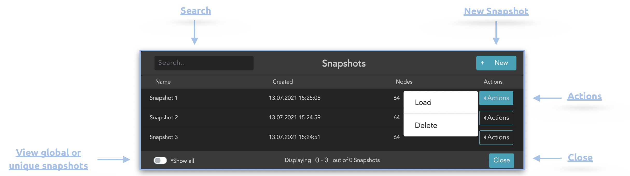 <figure><img src="https://content.gitbook.com/content/cEm1TSe9cbcIGVFLrAGo/blobs/jCXbLF3JffwFBrLQFSsD/image.png" alt=""><figcaption><p>Snapshots</p></figcaption></figure>