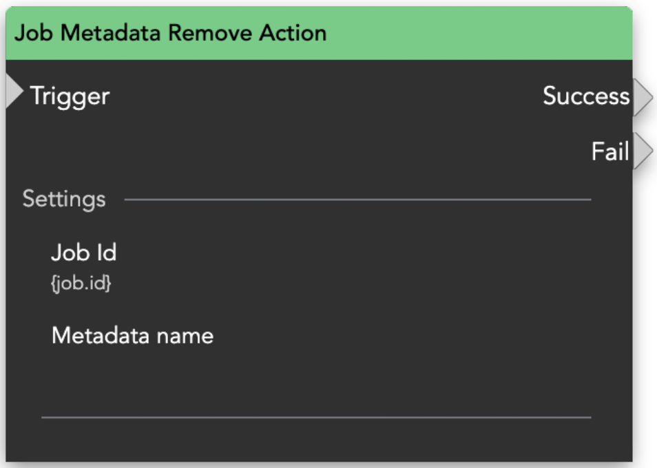 <figure><img src="https://content.gitbook.com/content/cEm1TSe9cbcIGVFLrAGo/blobs/aWRcFV5UC4CAQ2VgibId/image.png" alt=""><figcaption><p>Action Node - Job Metadata Remove Action</p></figcaption></figure>